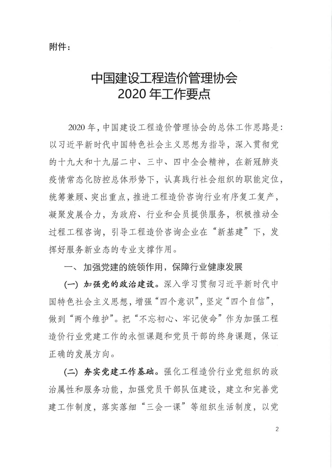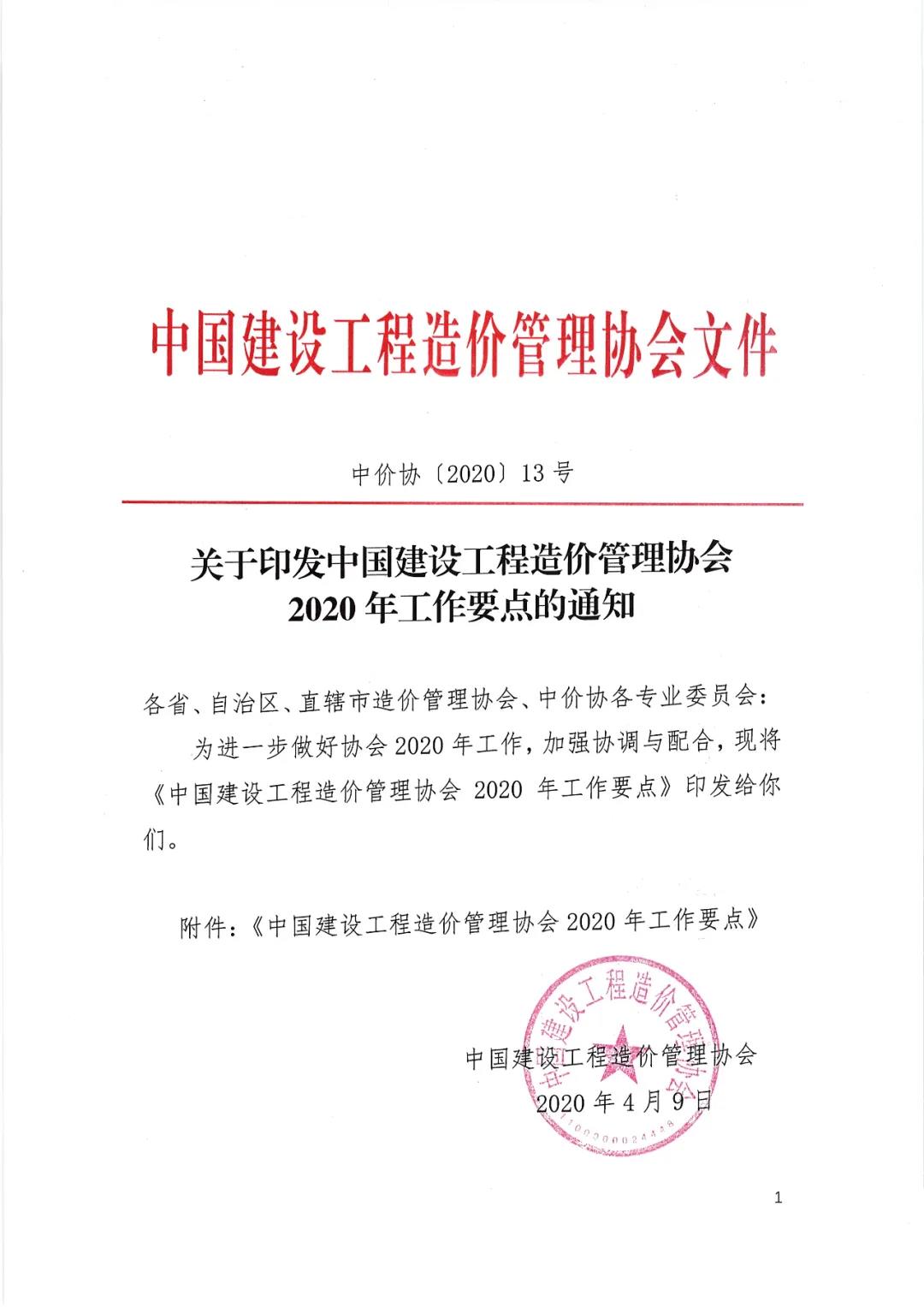 關于印發(fā)中國建設工程造價管理協(xié)會2020年工作要點的通知