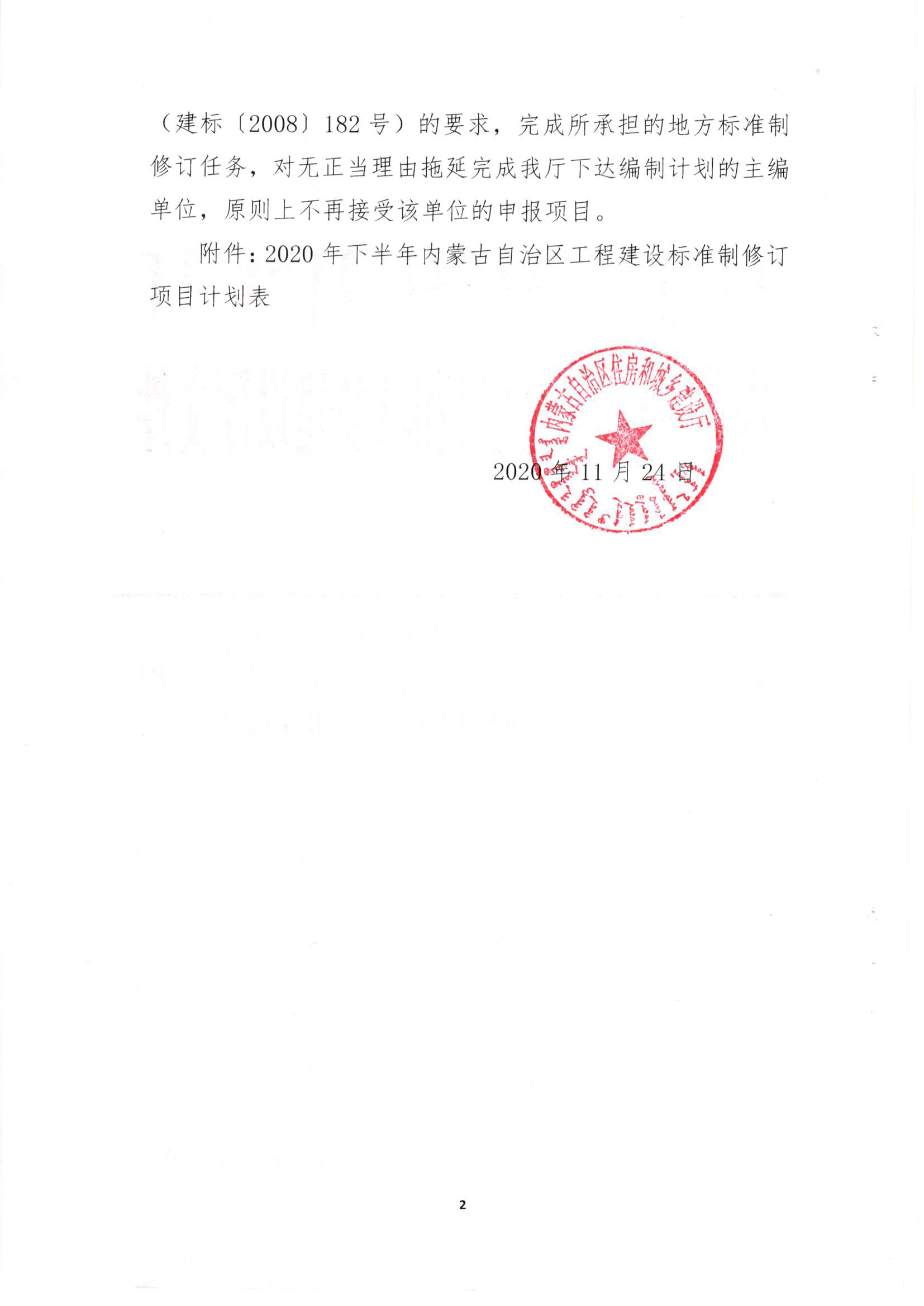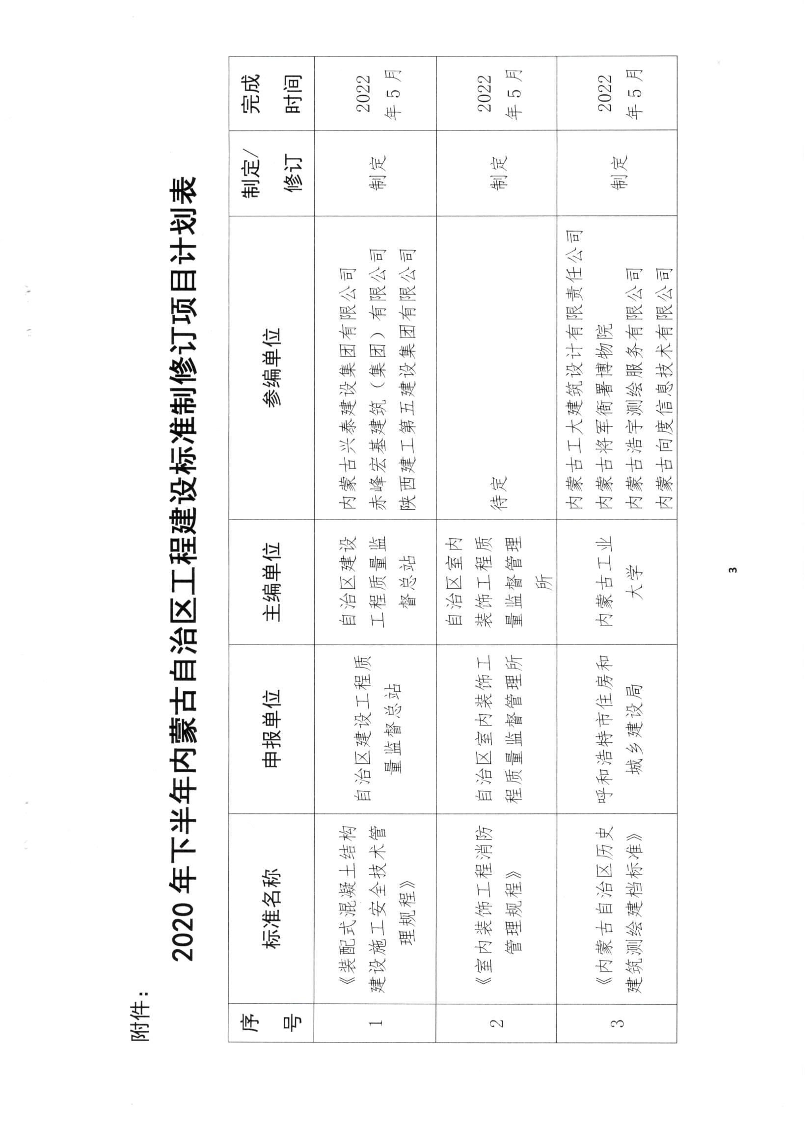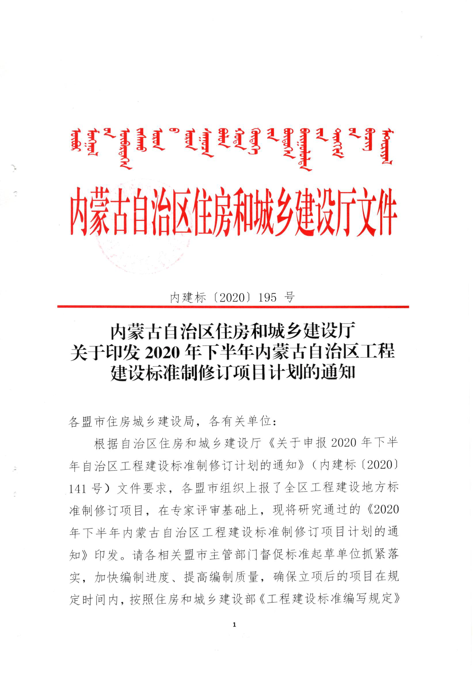 內(nèi)蒙古自治區(qū)住房和城鄉(xiāng)建設(shè)廳關(guān)于印發(fā)2020年下半年內(nèi)蒙古自治區(qū)工程建設(shè)標(biāo)準(zhǔn)制修訂項(xiàng)目計(jì)劃的通知